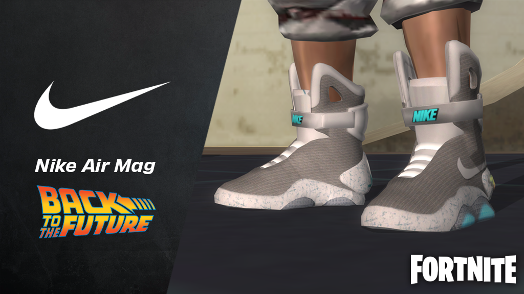 The iconic pop-culture sneaker from the 1989 'Back to the Future' sequel film, features a grey synthetic upper with a speckled midsole, an illuminated Swoosh logo, self power-lacing technology and glowing LED panels to give the shoe a futuristic effect.