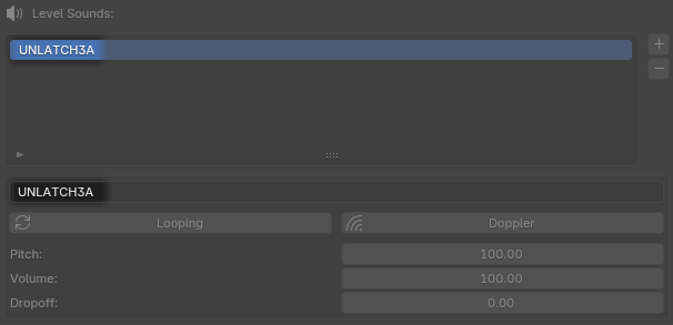 In NXTools, custom sounds can be used in this field. Make sure to use the name of the sound as defined in the Level Sounds panel.