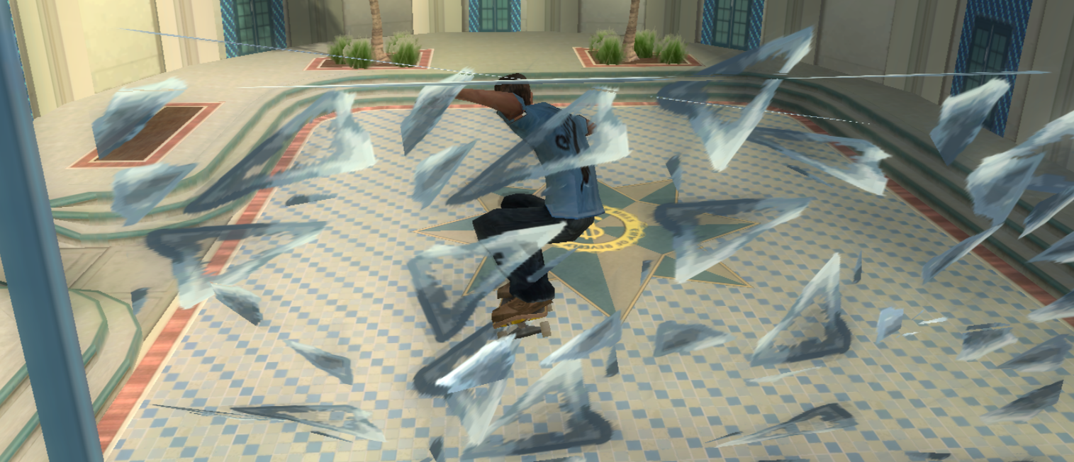 Objects in a level can be shattered with ease when touched by skater, or when an action is performed on them.
