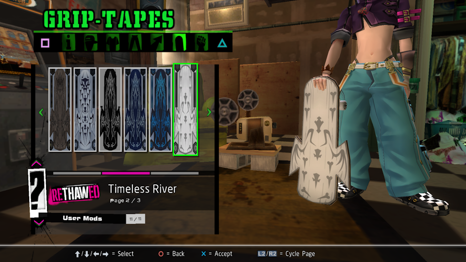 Installed items will show in the appropriate category of the Create-a-Skater menu.