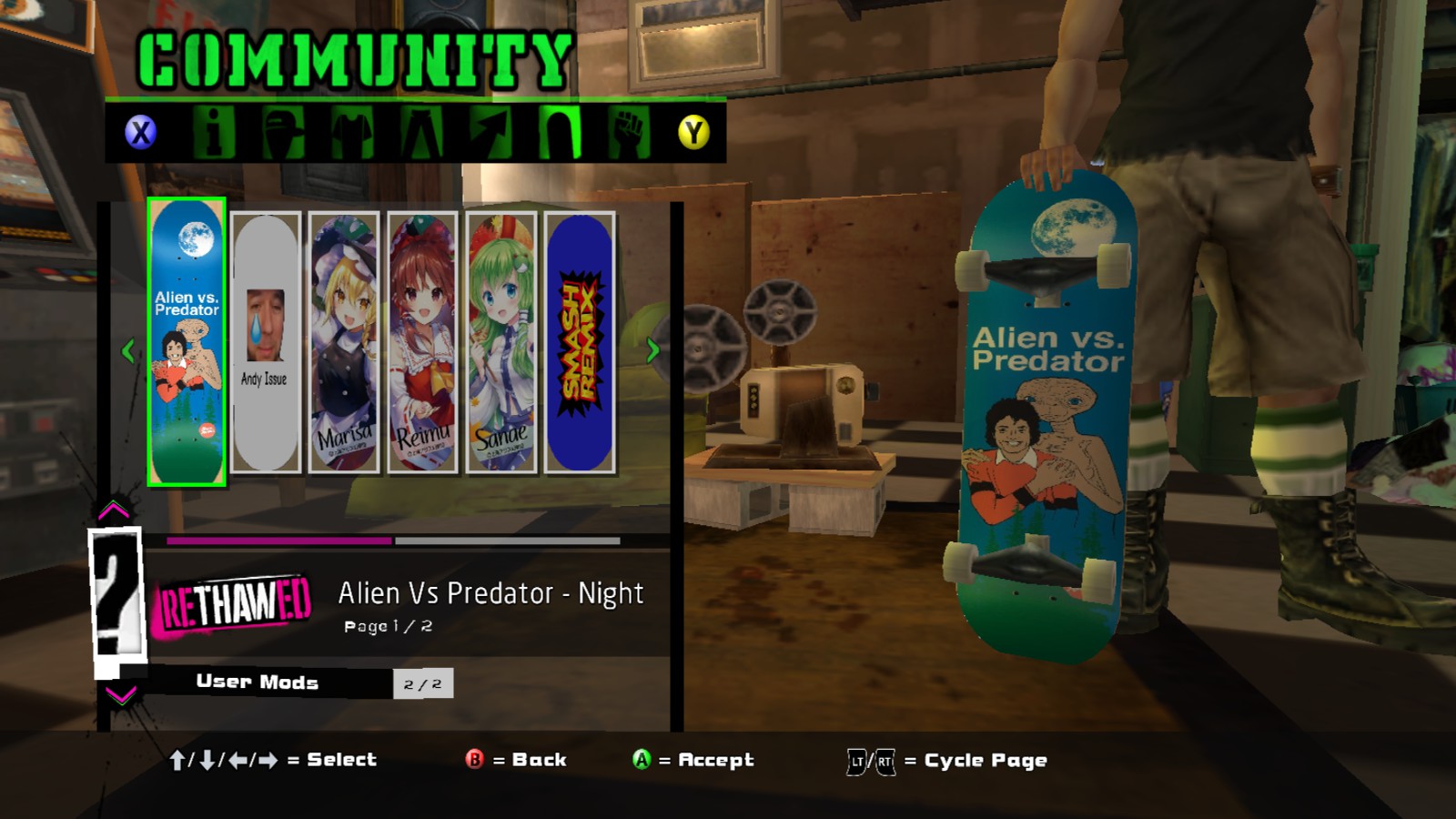 Installed items will show in the Deck Graphic category of the Create-a-Skater menu.