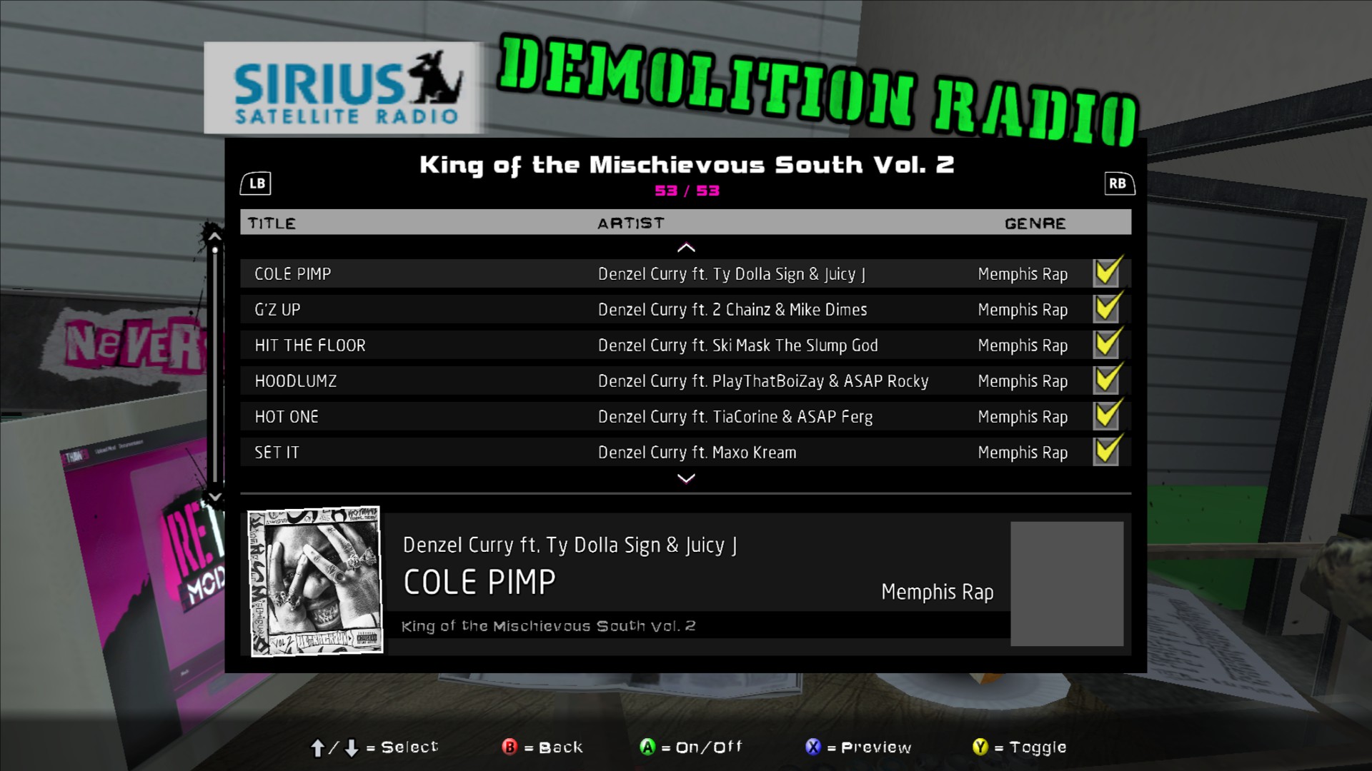 Installed soundtracks will appear in the Demolition Radio menu of the Music Options menu.