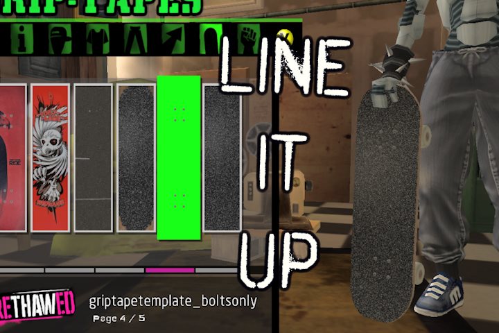 Created in paint.net using Noise Tool, circle tool, etc. Rethawed and THPSHD grips used as reference. I tried my best to line up the bolts with the truck bolts on the preset THAW X360 board.