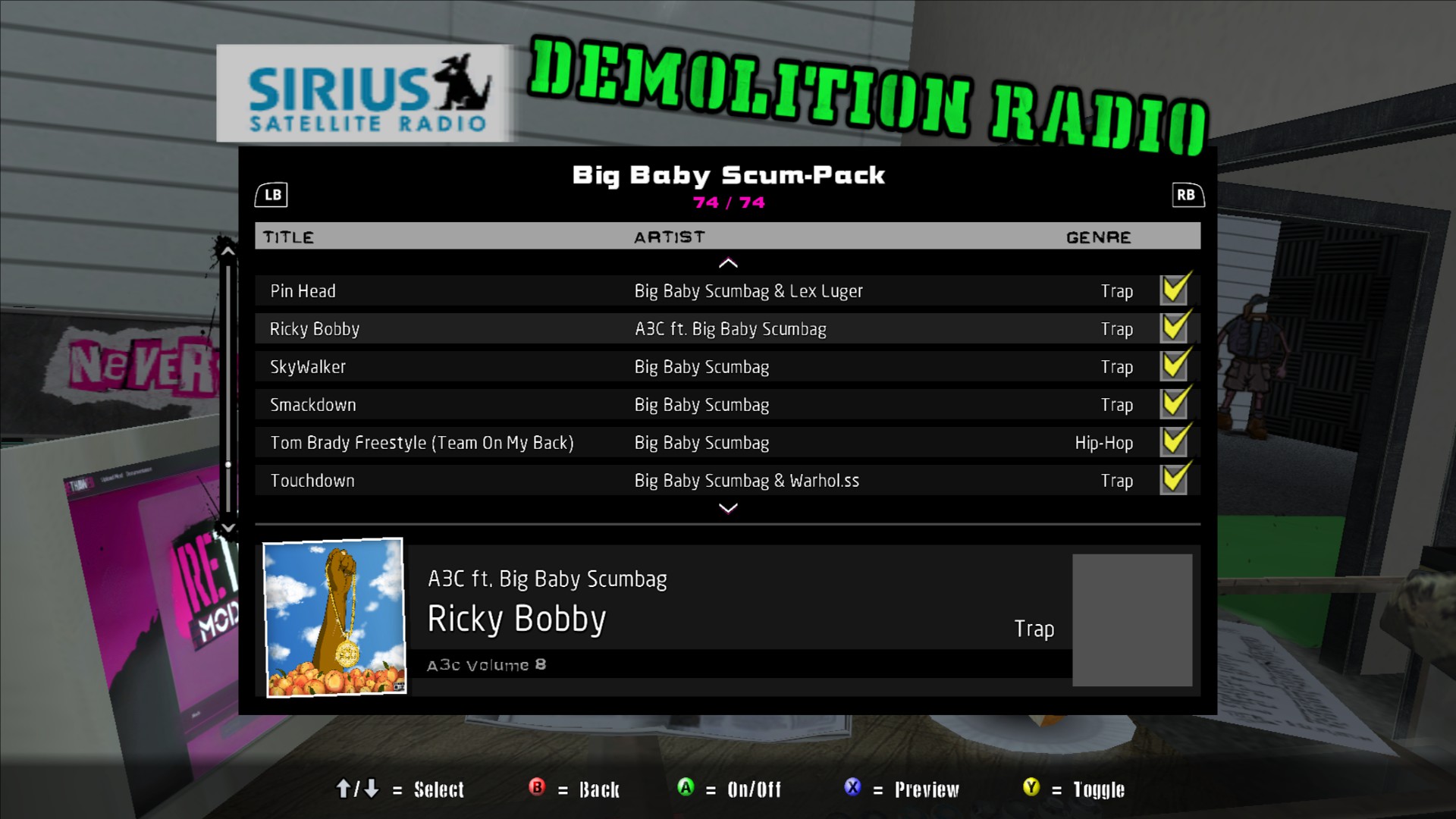 Installed soundtracks will appear in the Demolition Radio menu of the Music Options menu.