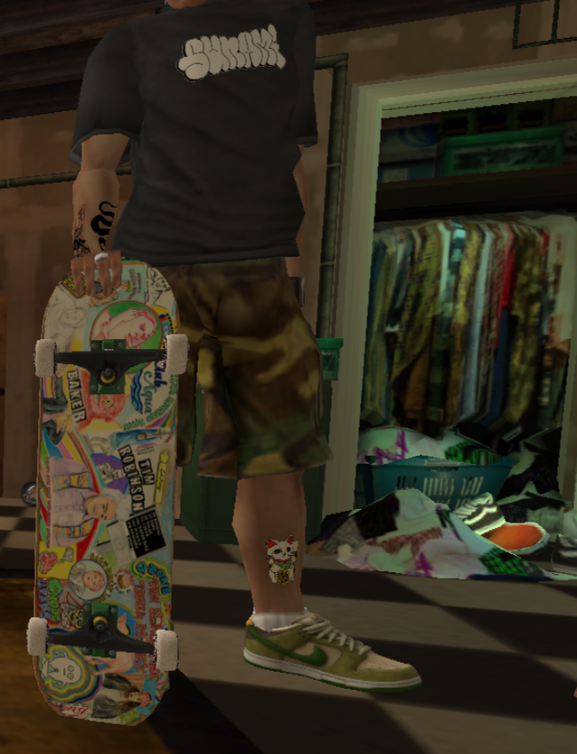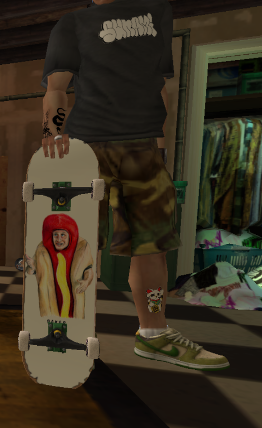 Installed items will show in the Deck Graphic category of the Create-a-Skater menu.