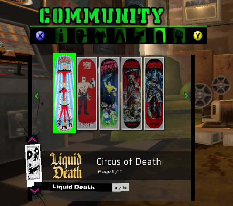 5 deck graphics: 2 Zero collab decks, Will Carsola collab deck, Tony Hawk's deck and "Circus of Death".