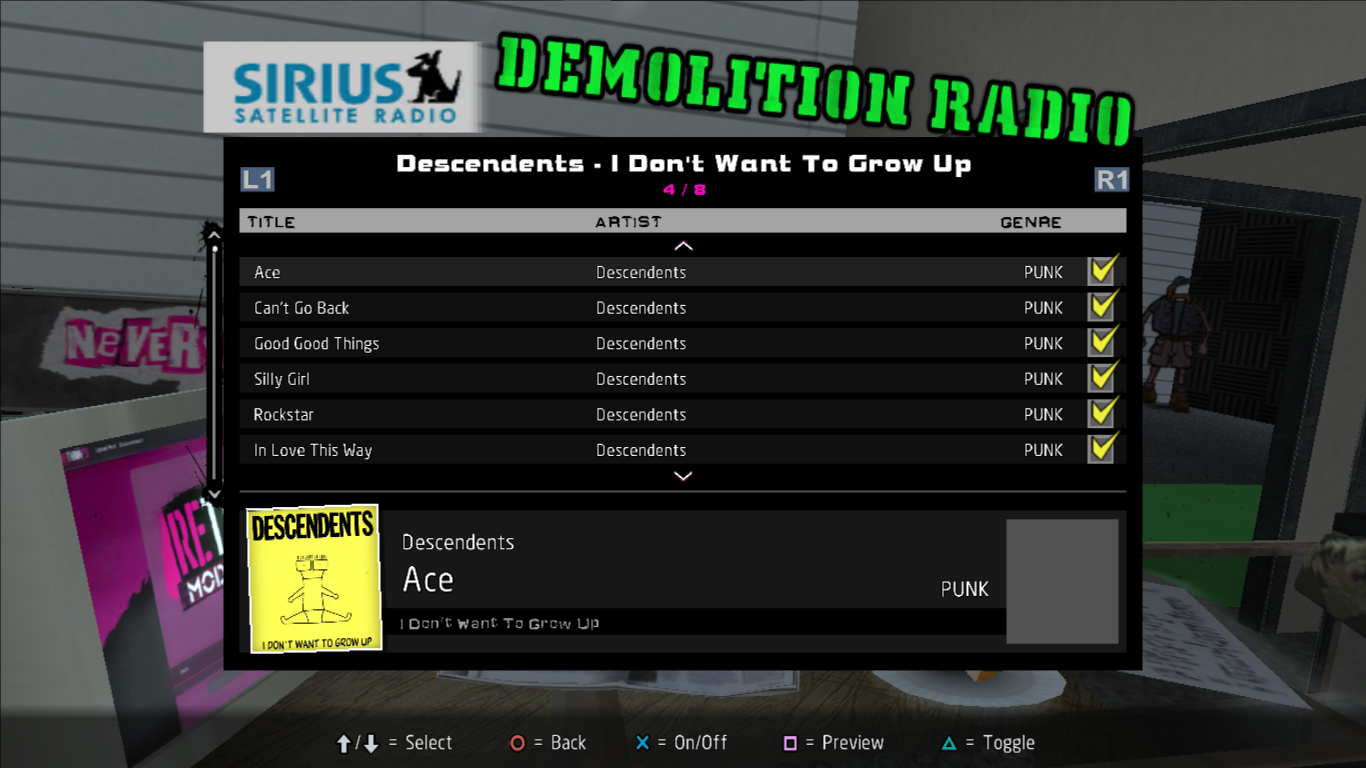 Installed soundtracks will appear in the Demolition Radio menu of the Music Options menu.