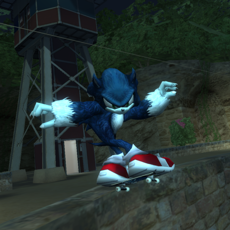 Sonic The Werehog Skater (Sonic Unleashed Wii with Unwiished remastered Textures by raisyu from GameBanana)