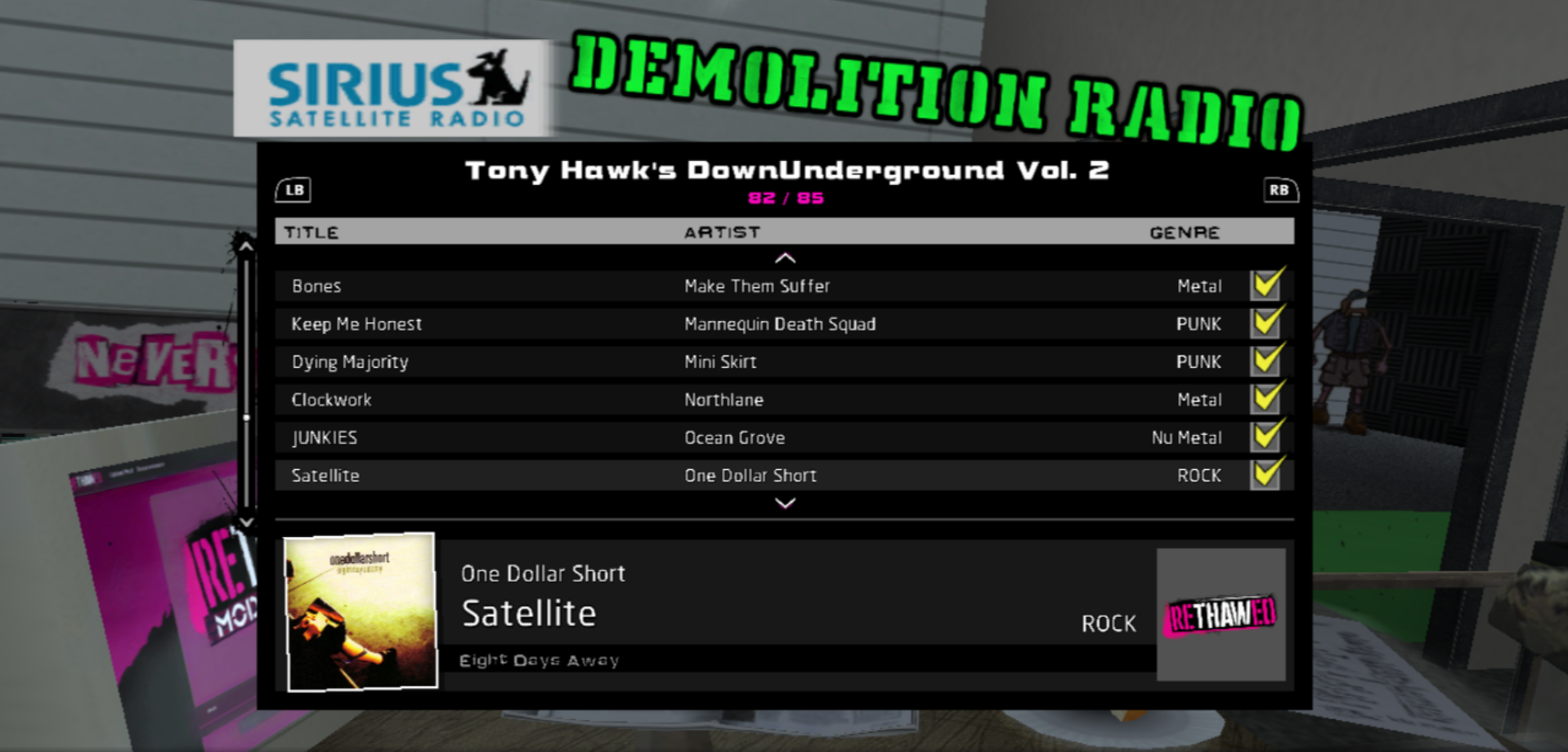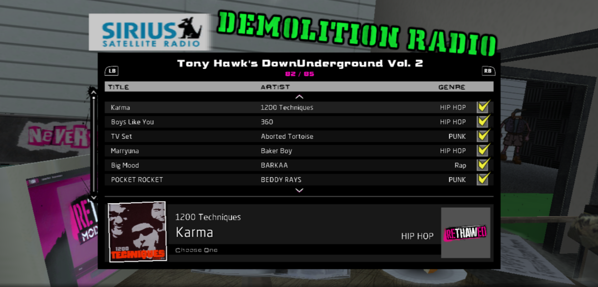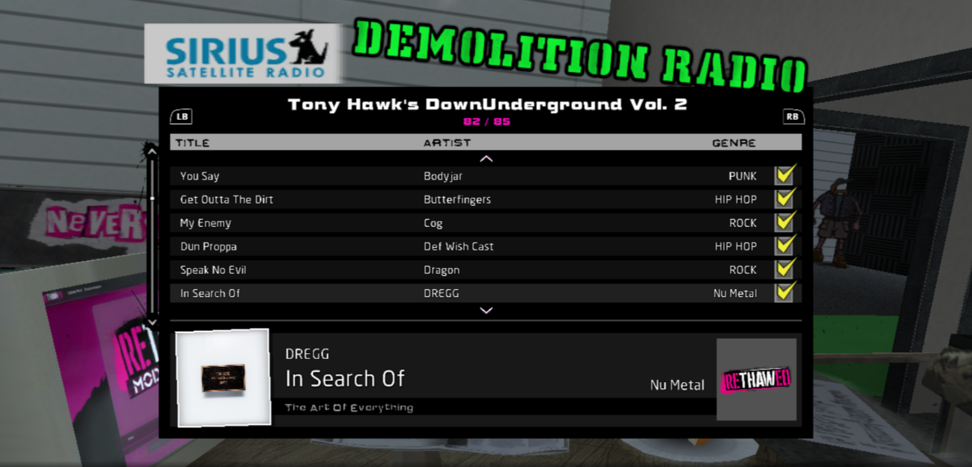 Installed soundtracks will appear in the Demolition Radio menu of the Music Options menu.