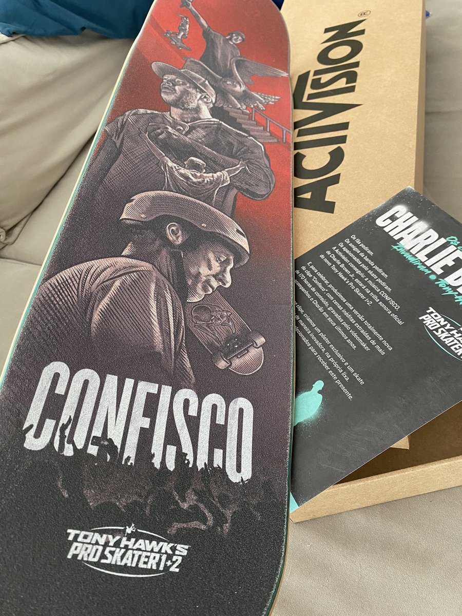 Deck, grip and wheel graphics of the limited edition board made to celebrate the release of THPS1+2 in Brazil.
