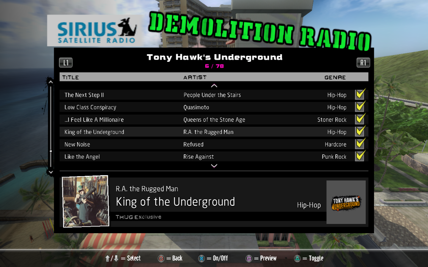 The soundtrack for Tony Hawk's Underground. The biggest TH soundtrack to date with a whopping 77 songs! Four hours of music!! Now that's epic.