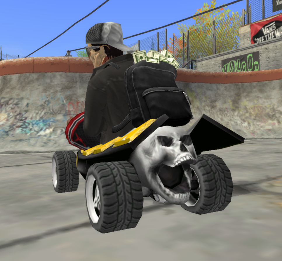 This mod replaces thug2 minikart skin vehicle so make sure u backup the original file first before replace it. The files are located in THAW\Game\data\models\Veh\thug2_minikart