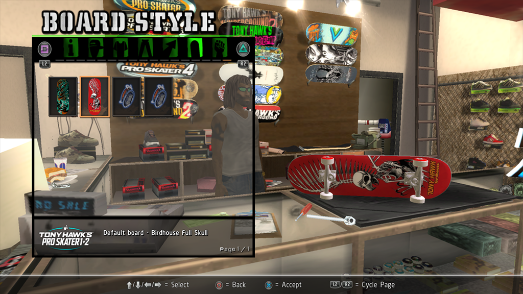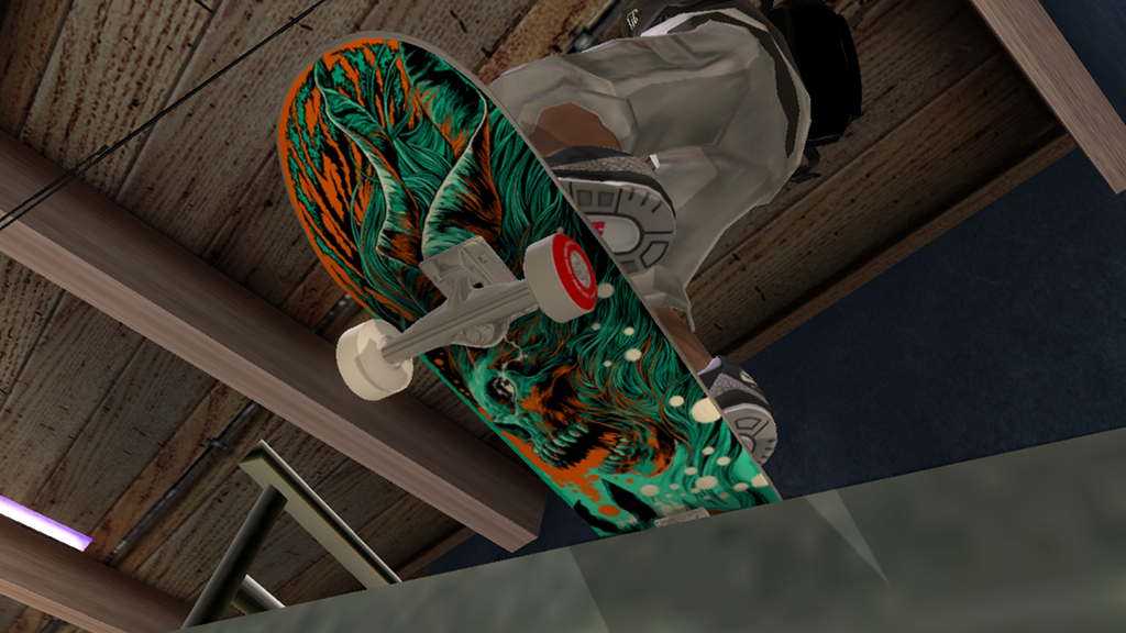 This board comes with 3 parts: Default board with 2 deck art - Helsom The Conjuring and Tony's default Birdhouse Fullskull, Tensor Truck, Default Wheels. All fully rigged and breakable during Freakout mode.