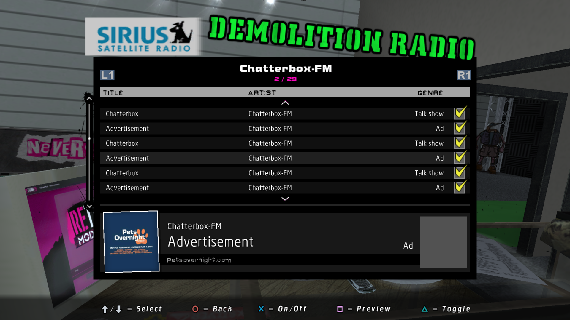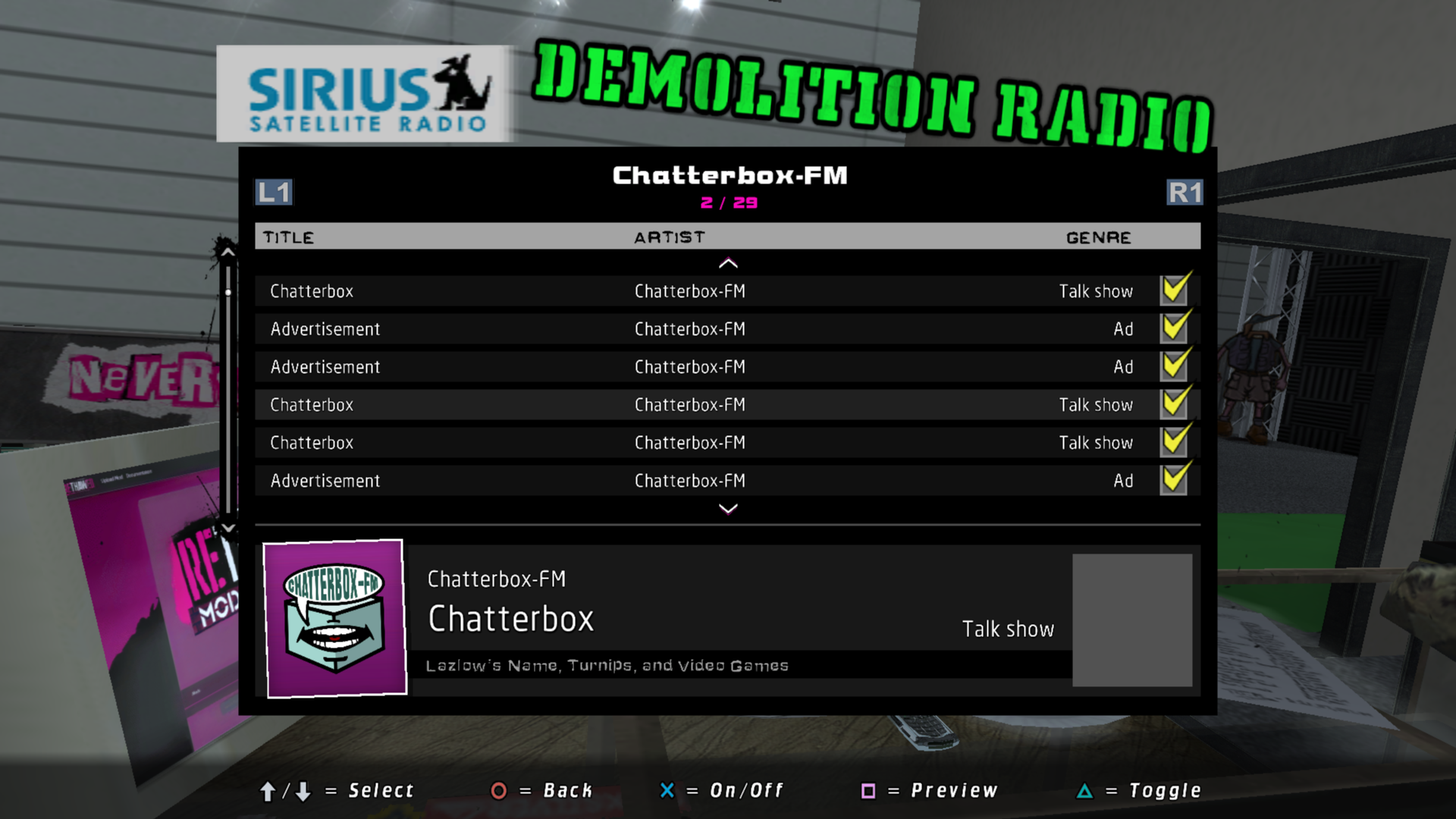 Ever wanted THAW's Demolition Radio to act like an actual radio station outside of specific moments in Story Mode? Well now you can with Liberty City's premier phone-in station, Chatterbox-FM!