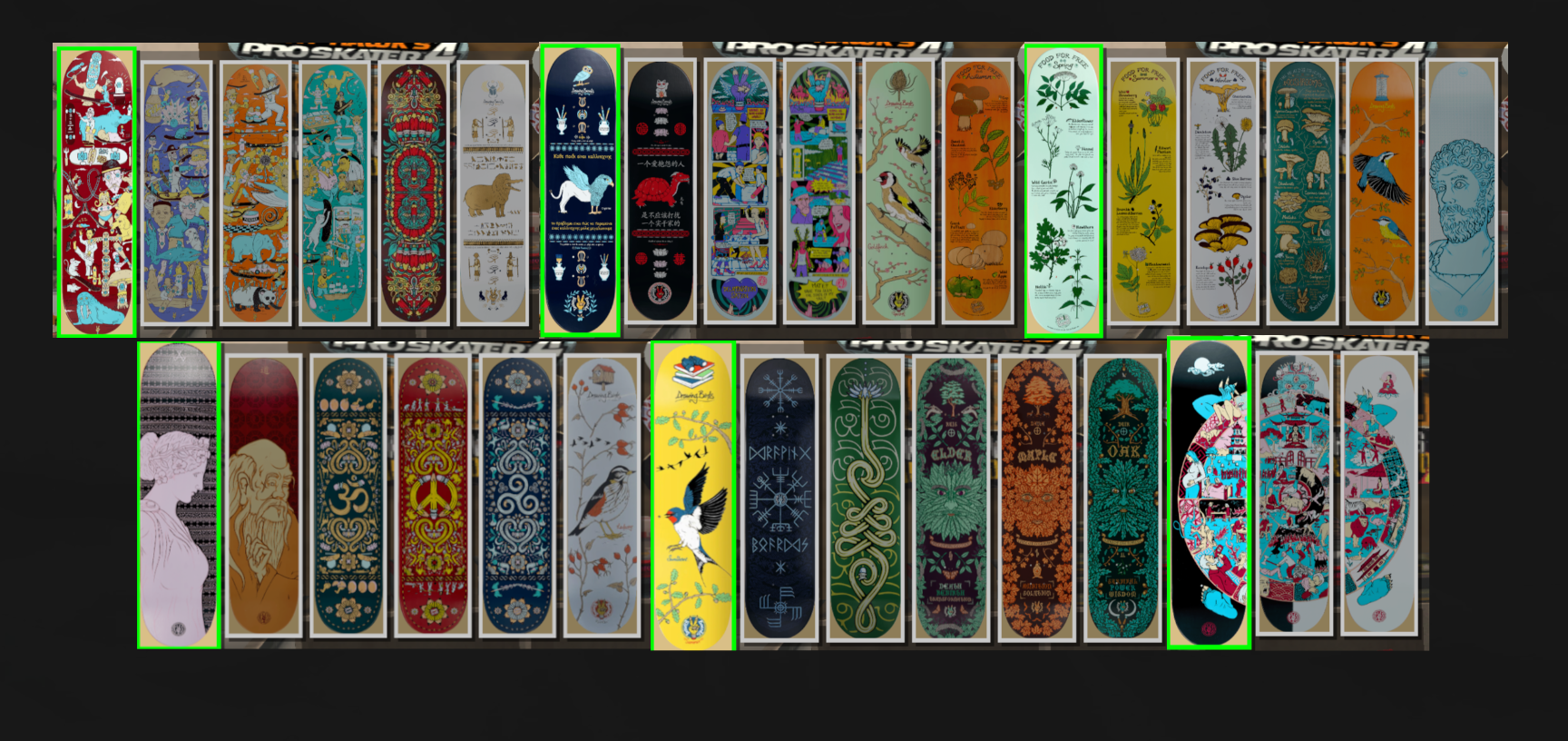 what it says on the tin. 33 deck graphics from drawing boards skateboards. all carefully implemented to the best of my ability. if you liked it or have any advice on how i can improve, please let me know.