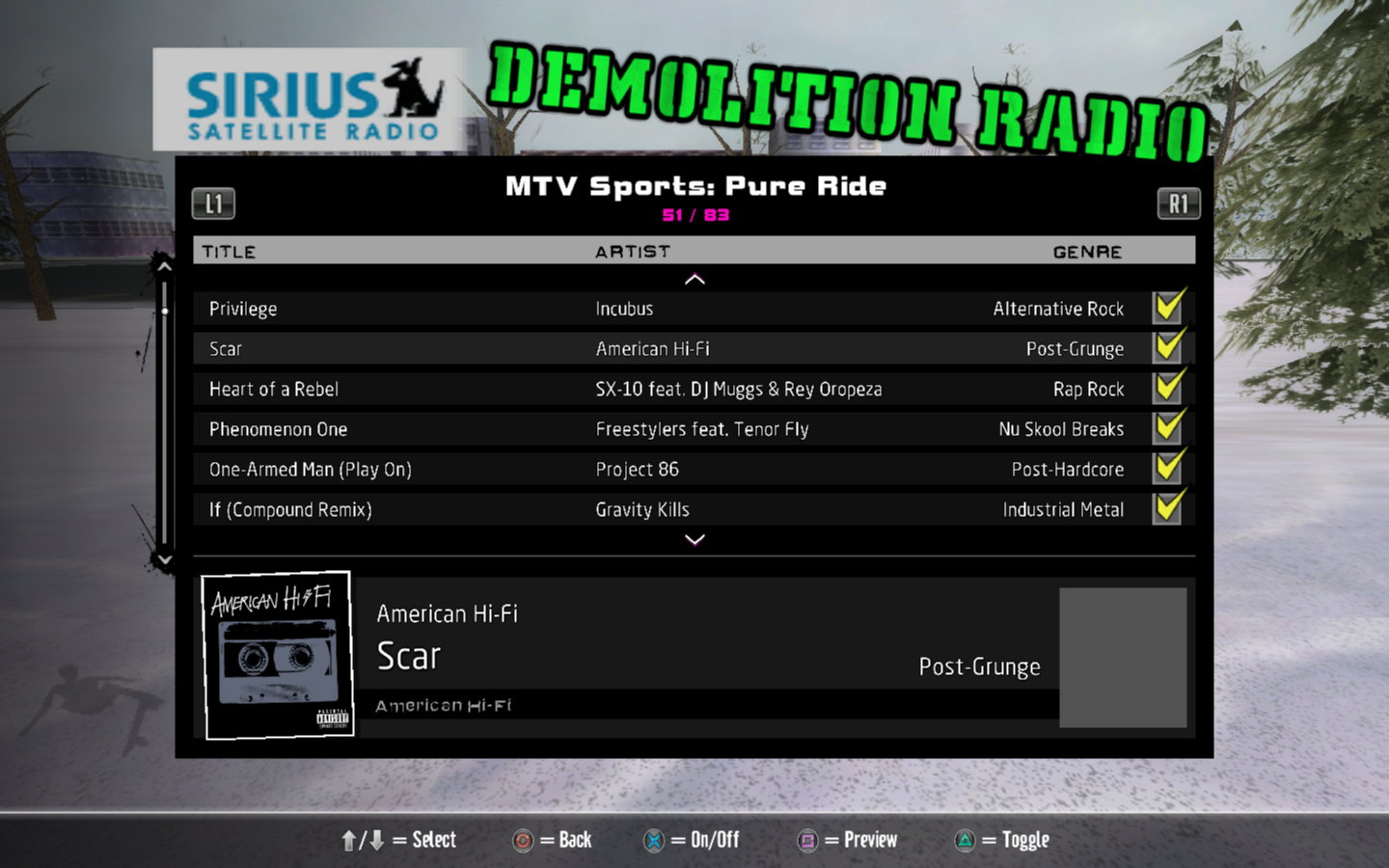 Installed soundtracks will appear in the Demolition Radio menu of the Music Options menu.