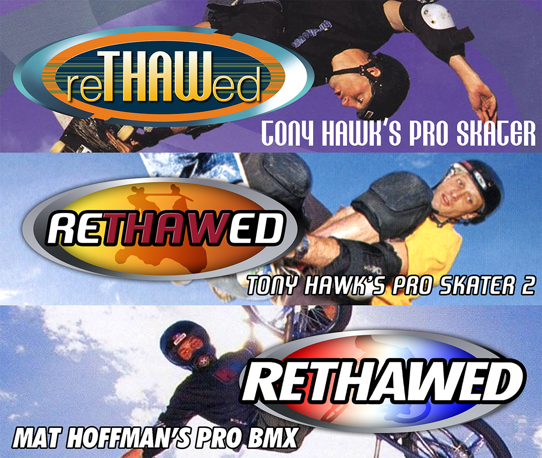 Classic-styled reTHAWed logos made available as deck stickers, logos, wall stickers, tags, and truck stickers in following styles: