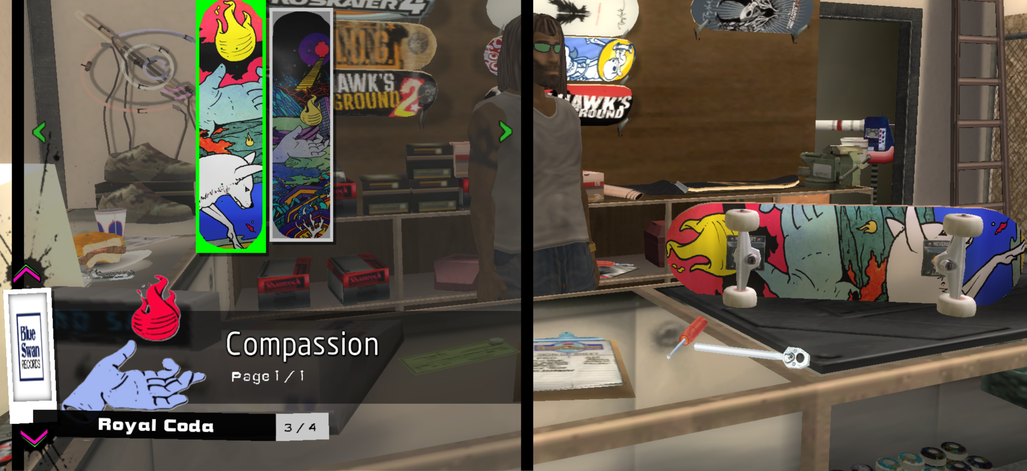 Installed items will show in the Deck Graphic category of the Create-a-Skater menu.