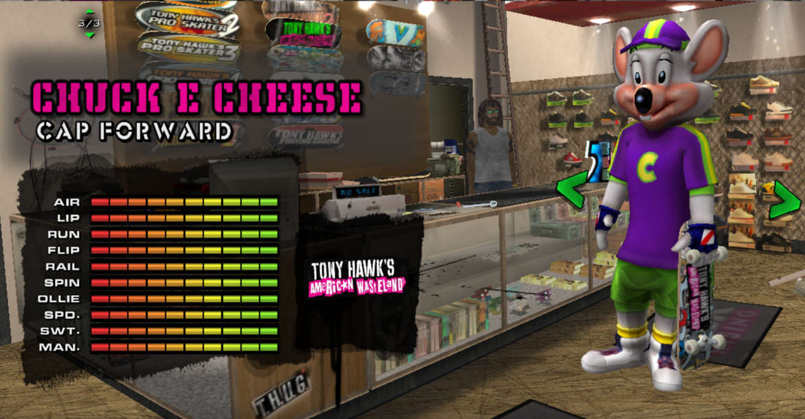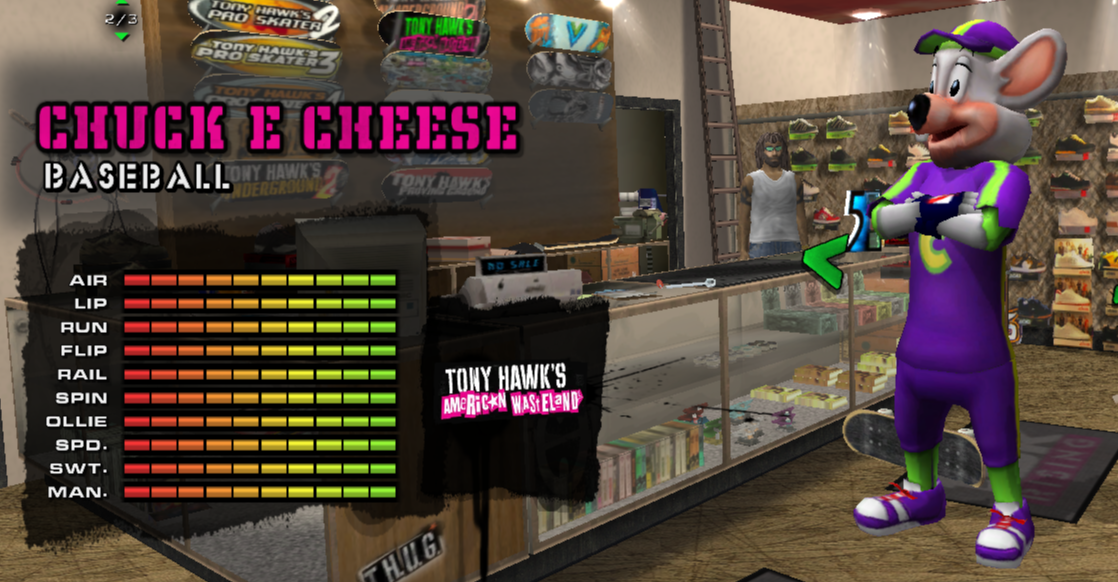 Charles Entertainment Cheese, known more commonly as Chuck E Cheese is a mouse...rat...rodent, who serves as the mascot for the self named resturaunt-arcade chain, this is based on his "Avenger" look that was used from the late 90s to early 2010s (Avenger is literally what it's called in the corporate's branding internally, for whatever reason) coming from the Wii game "Chuck E. Cheese's Sports Games".