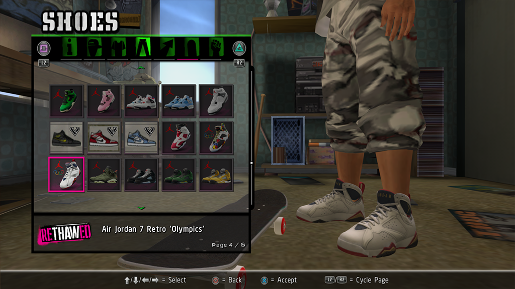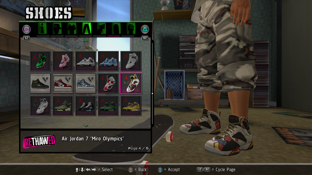 Air Jordan 7 Olympic colorways sneakers from FN game for CAS Skaters, contains 2 colorways: Miro Olympic and 2012 Olympic.