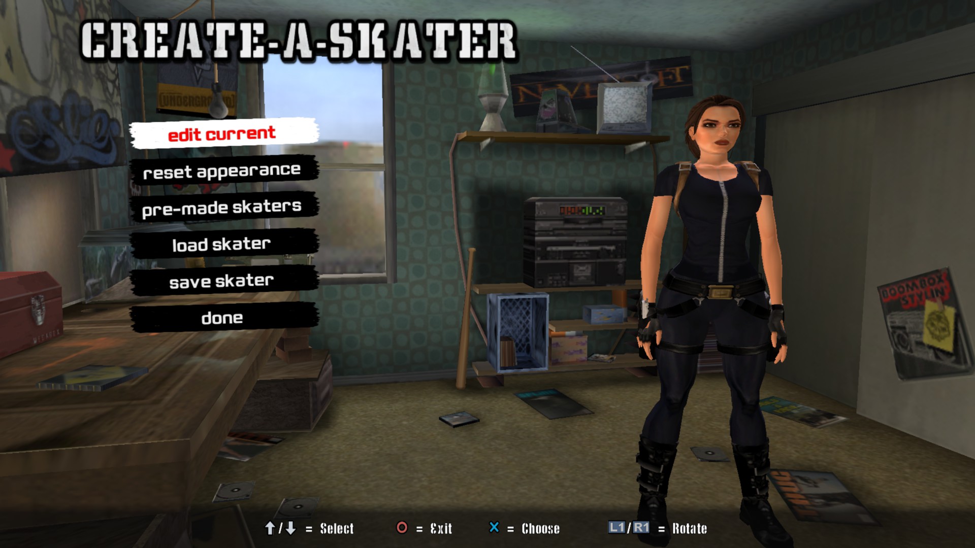 Tomb Raider: Anniversary Lara Croft in three skins. Lara Classic, Sport, and Catsuit ripped by HenrysModels All models are property of Crystal Dynamics If you'd like to edit scale you can copy/paste this under "SkaterInfo" in the skater.ini file and edit accordingly: ScaleX=1.0 ScaleY=1.0 ScaleZ=1.0