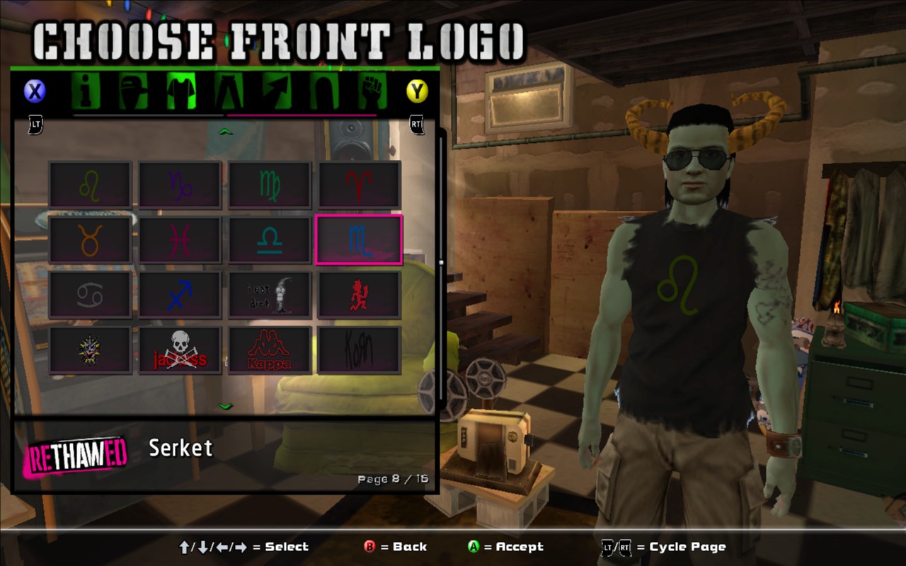 Installed logos will appear in the Logo categories of the Create-a-Skater menu.