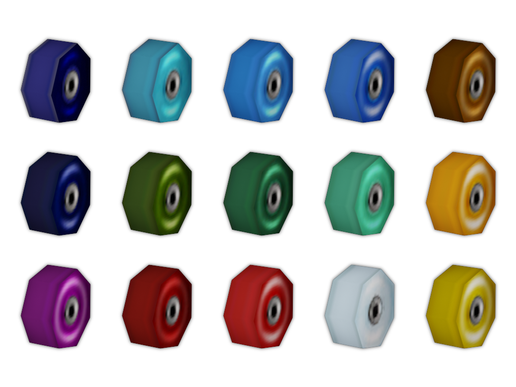 The trucks and wheels from the Dreamcast port of THPS1 can be used in reTHAWed since they weren't officially added into it yet. Best used with the THPS2X board and griptape.