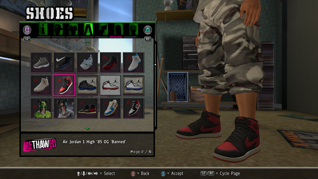 Air Jordan 1 Retro OG '85 'Bred/Banned' sneakers from FN game for CAS Skaters.