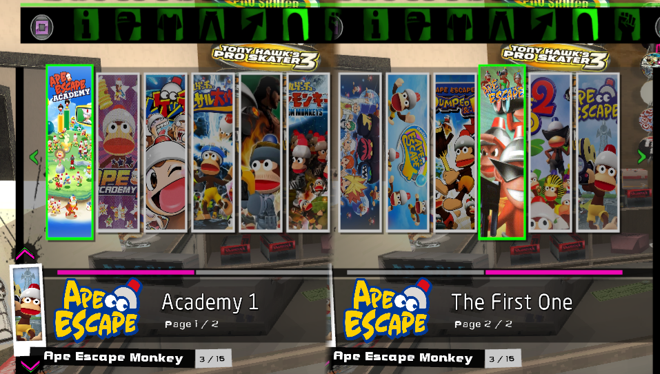 1 Skater with 6 alternate outfits for each version of the Pipo Monkeys