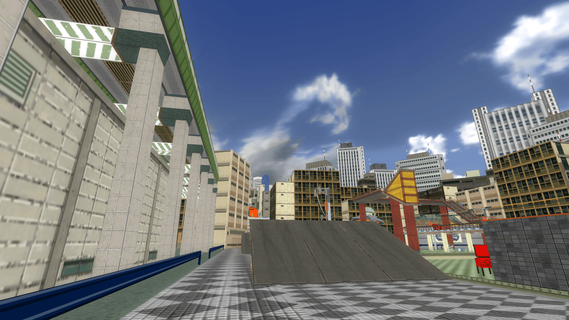 Port of the hub level from Jet Set Radio Future. One of the few level ports from a non-Tony Hawk game that is actually somewhat skateable, the geometry is a bit glitchy though.