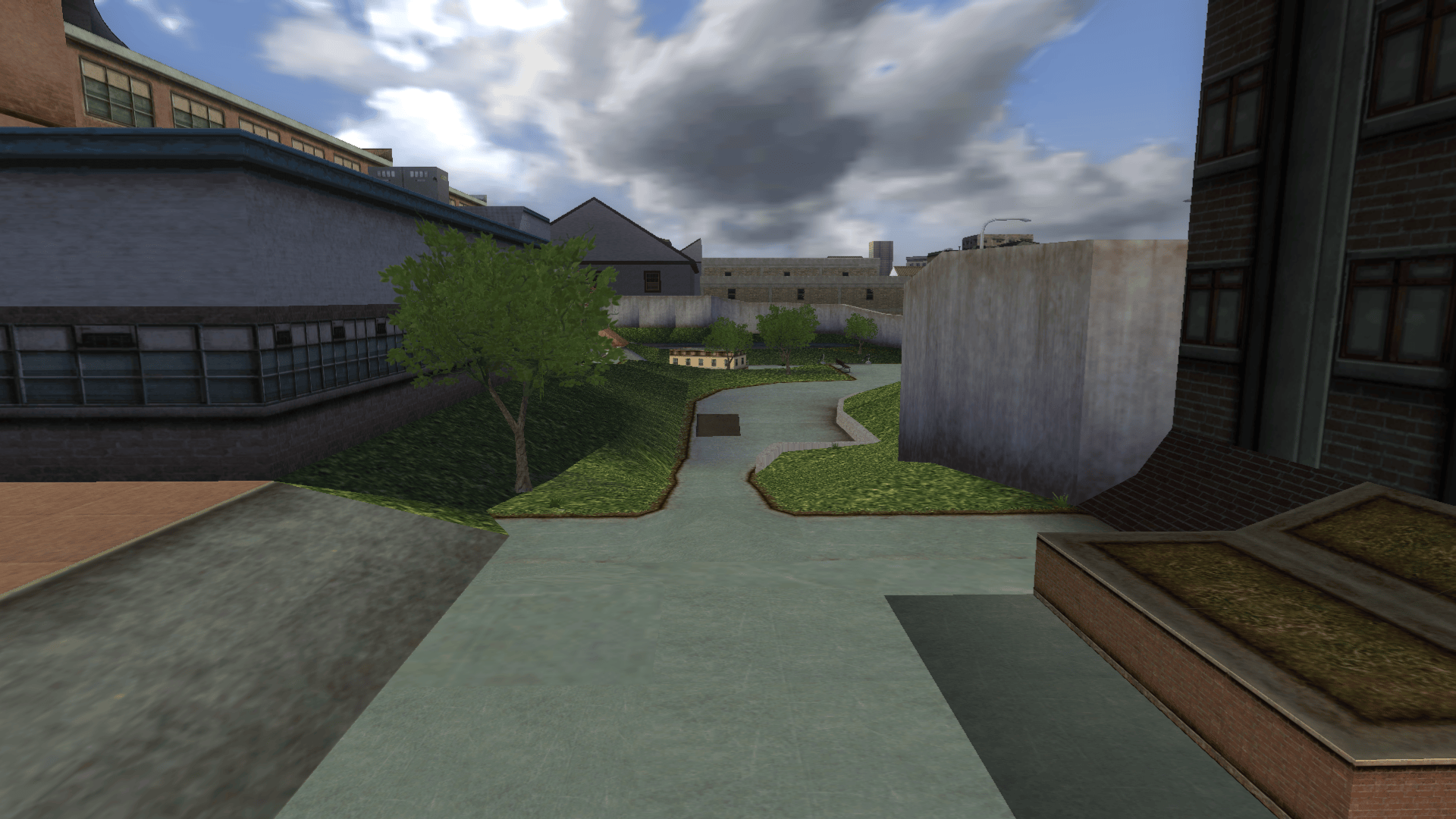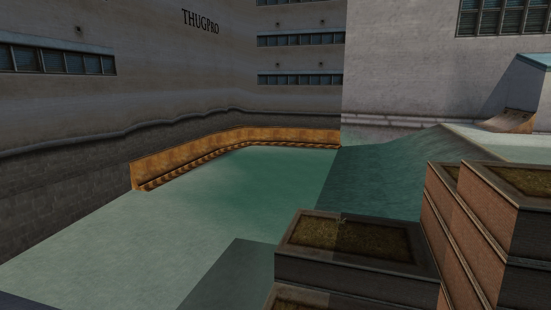 Map has all new level design using assets from the ps1 THPS games' school levels and is based on a school the creator went to. The map is quite large and densely populated with objects.