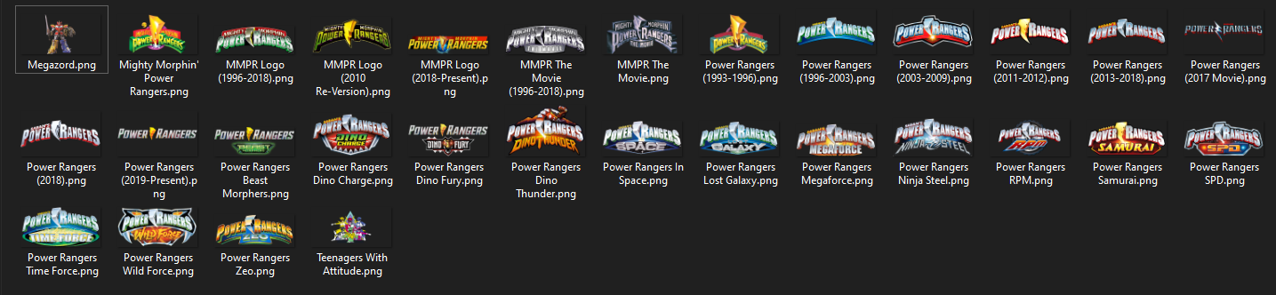 Included in the pack are logos for the Power Rangers franchise, including a fan-made MMPR logo based on the design between Zeo & Ninja Steel.