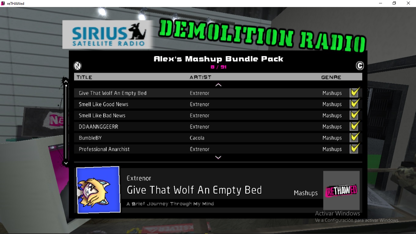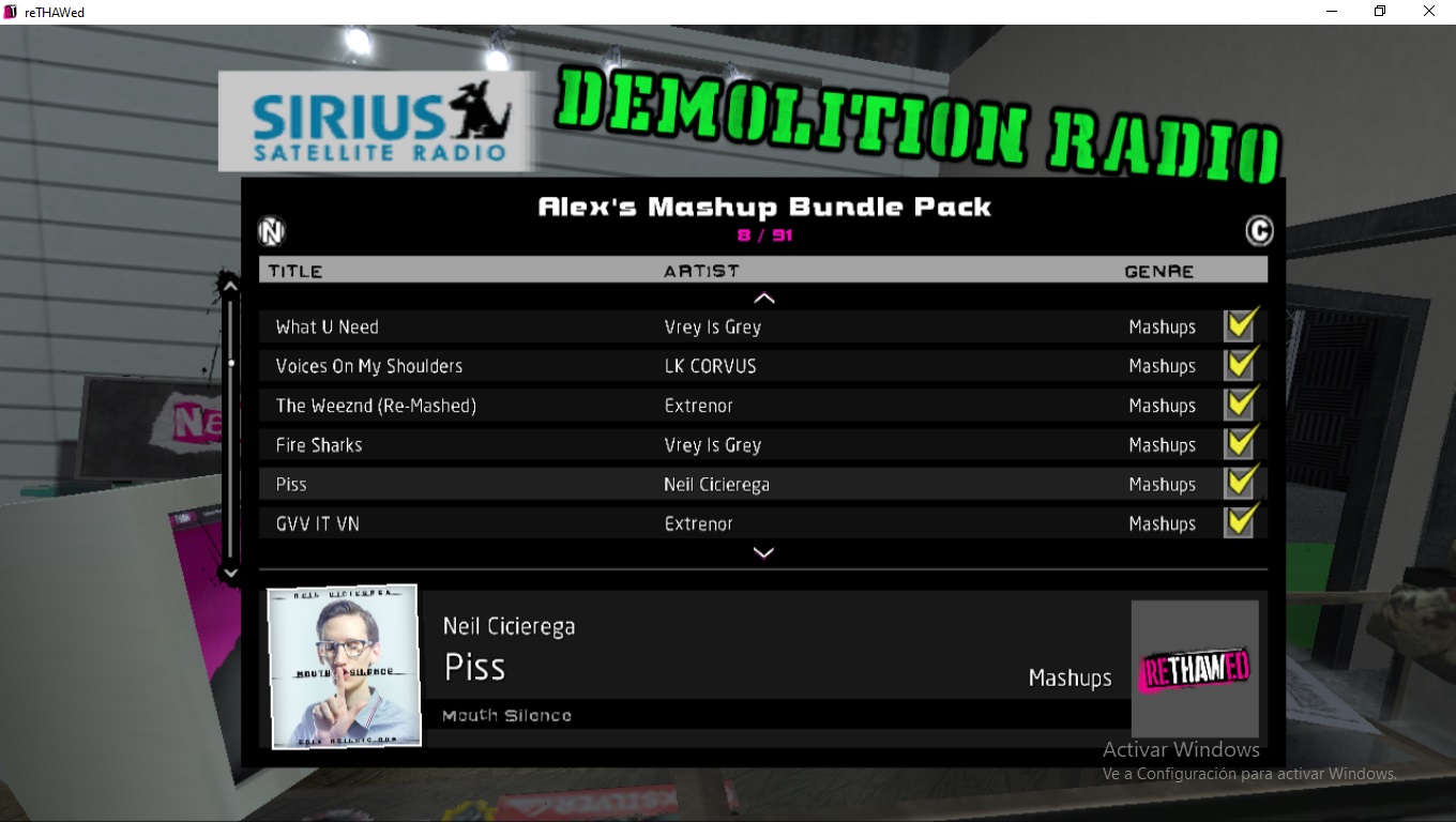 Installed soundtracks will appear in the Demolition Radio menu of the Music Options menu.