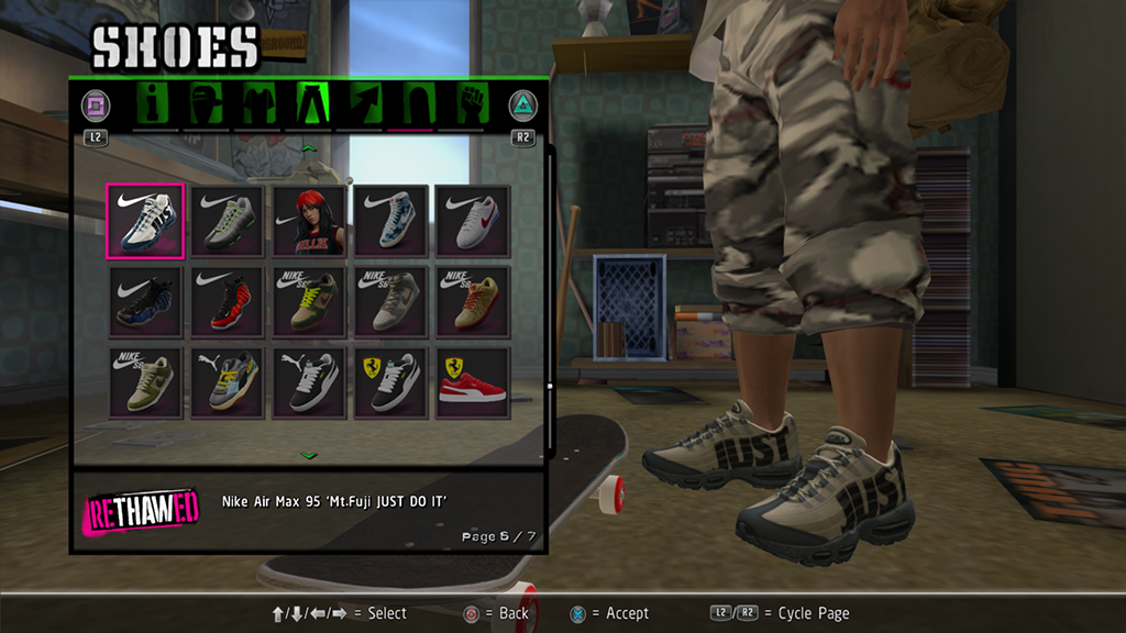Installed items will show in the appropriate category of the Create-a-Skater menu.