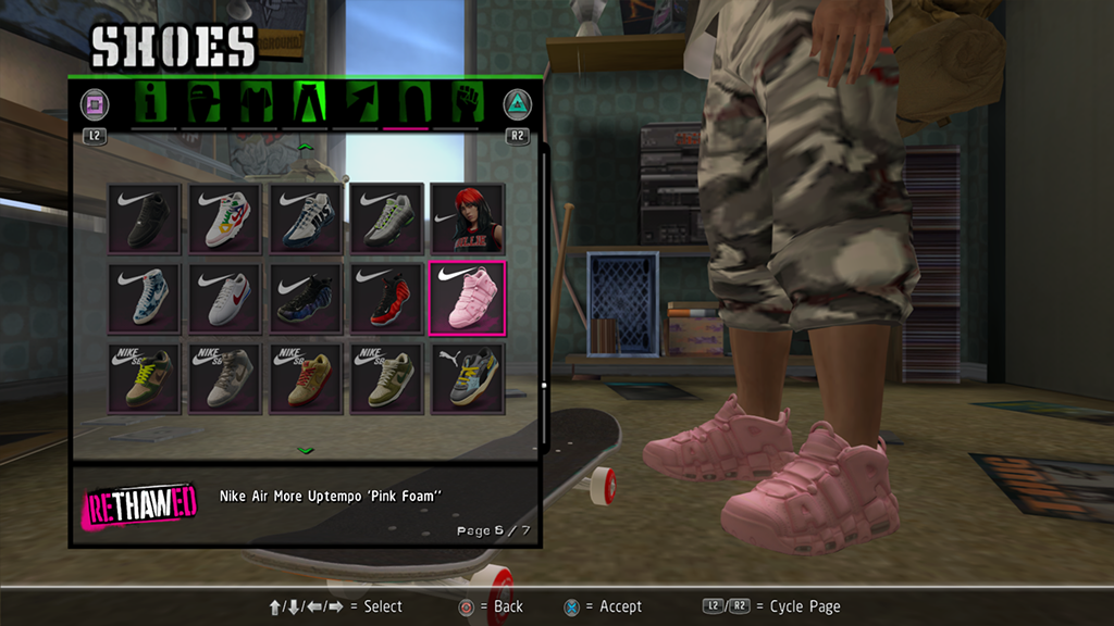 Installed items will show in the appropriate category of the Create-a-Skater menu.