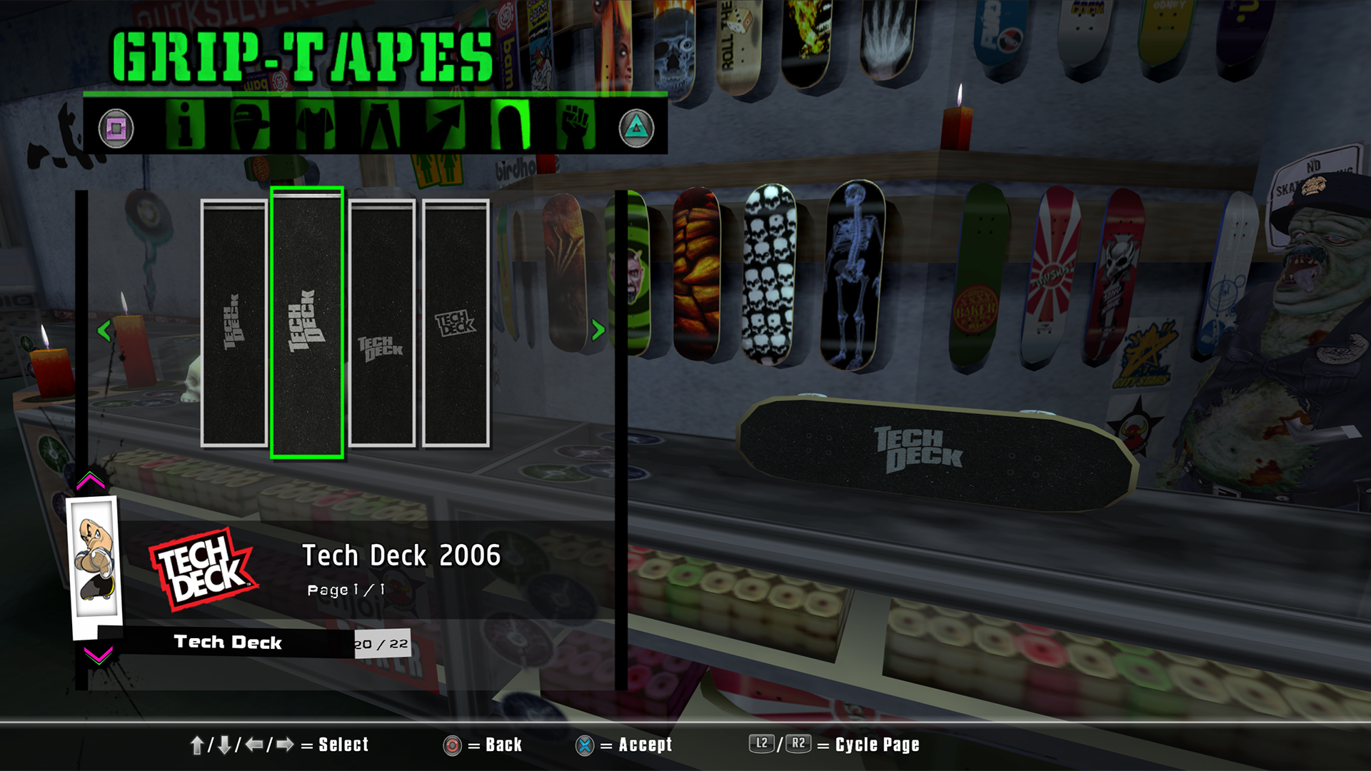 Four different styles of Tech Deck Griptape from 1998 to 2012