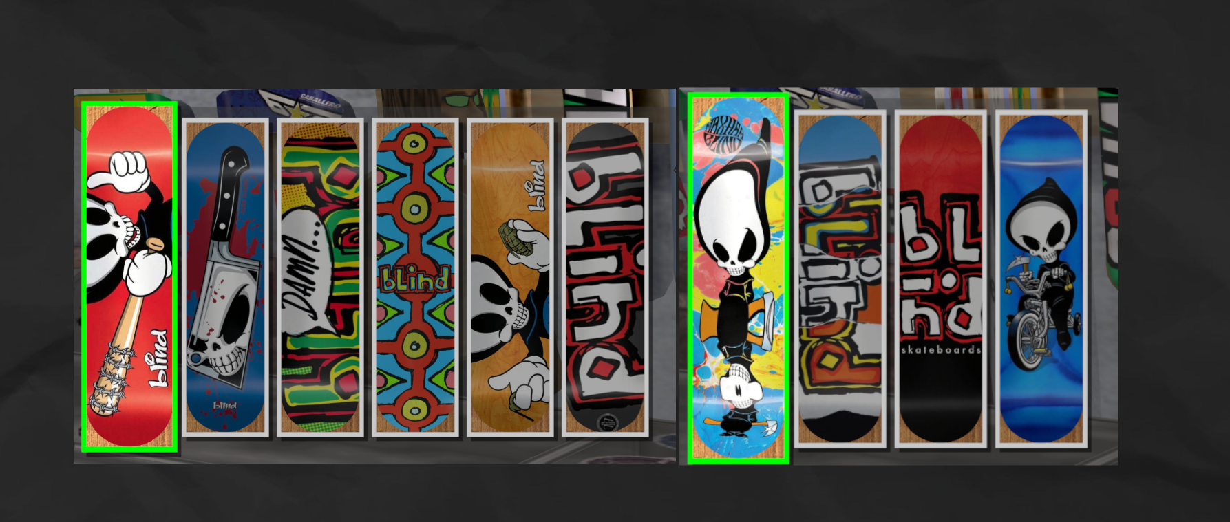 as it says on the tin: a selection of 10 decks from Blind skateboards.