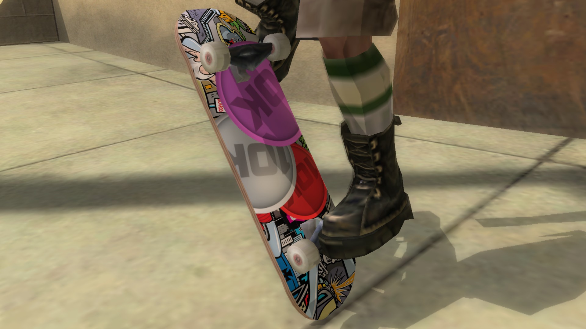 Installed stickers appear in the Sticker categories of the Create-a-Skater menu.