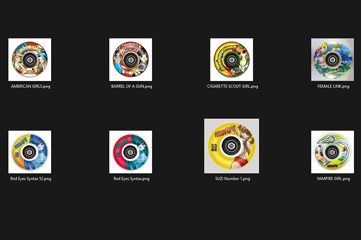 Installed graphics appear in the Wheel Graphic category of the Create-a-Skater menu when modifying wheels.