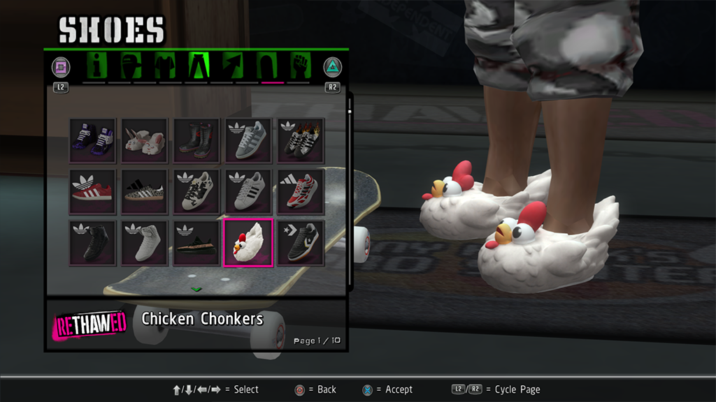 Installed items will show in the appropriate category of the Create-a-Skater menu.