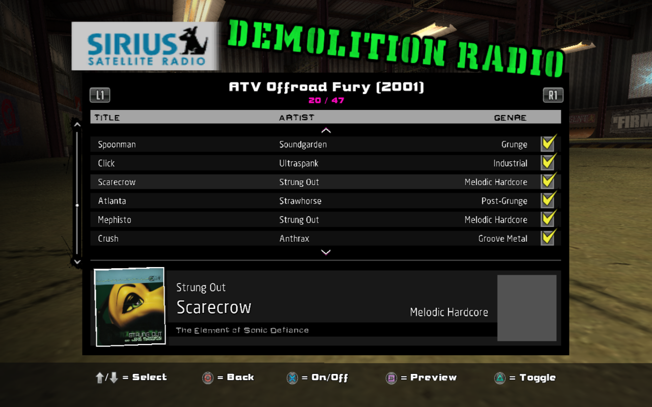 The ATV Offroad Fury soundtrack for reTHAWed! Get ready to shred in the dirt to the rippin' sounds of Strawhorse, Alice in Chains, Anthrax, Sevendust, and MORE!