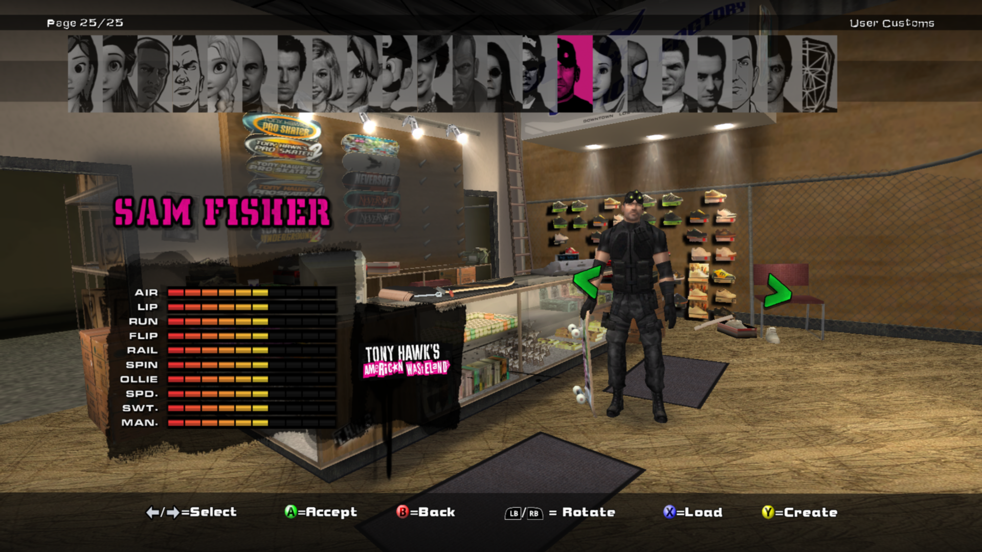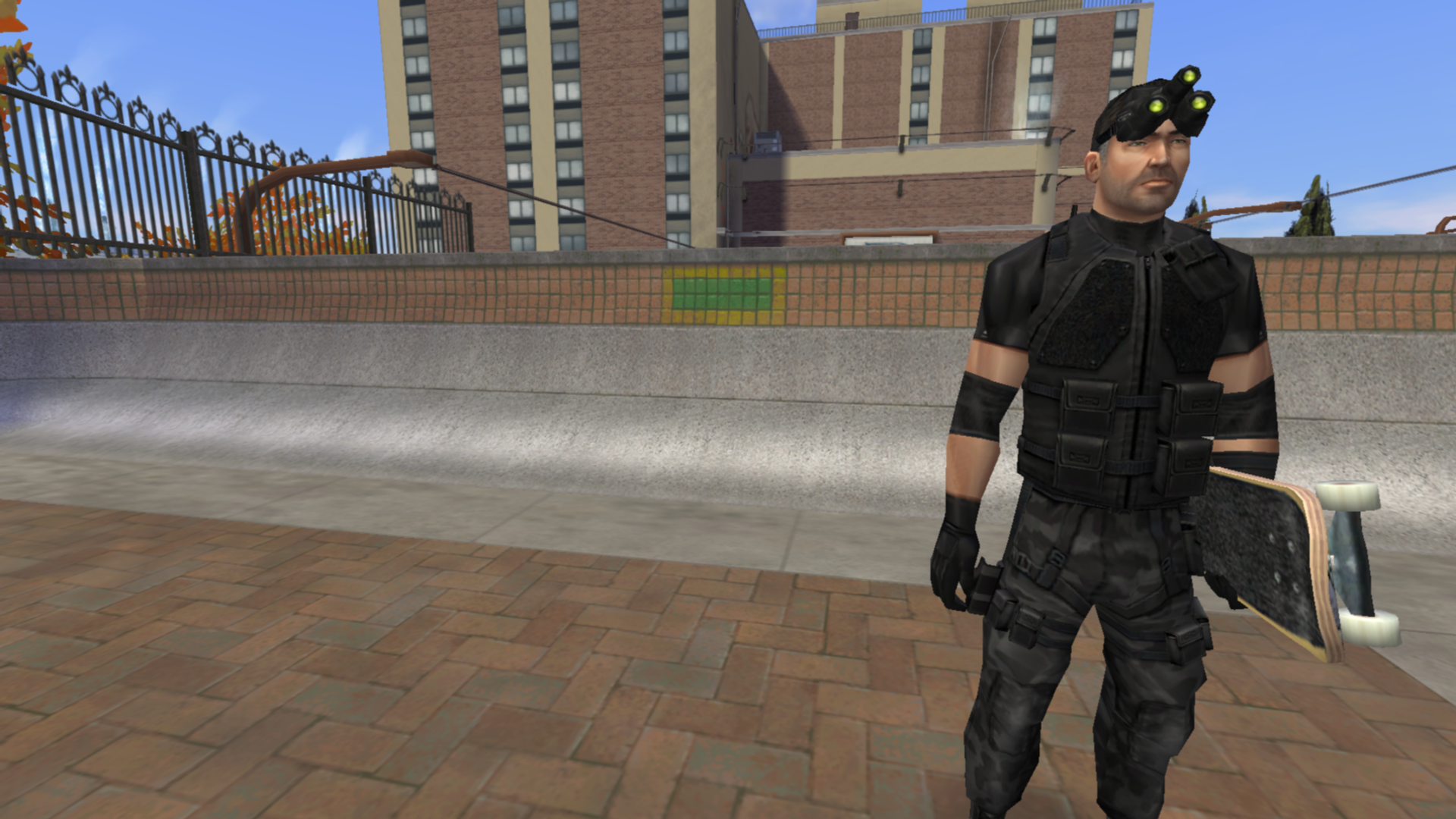 Fisher was once a member of Third Echelon, a highly secretive branch of the NSA where he carried out black bag operations as part of the eponymous Splinter Cell programme. After a feud with both Solid Snake and James Bond over the most trivial of things, Fisher retired from field work and went to hone his skills at skateboarding.