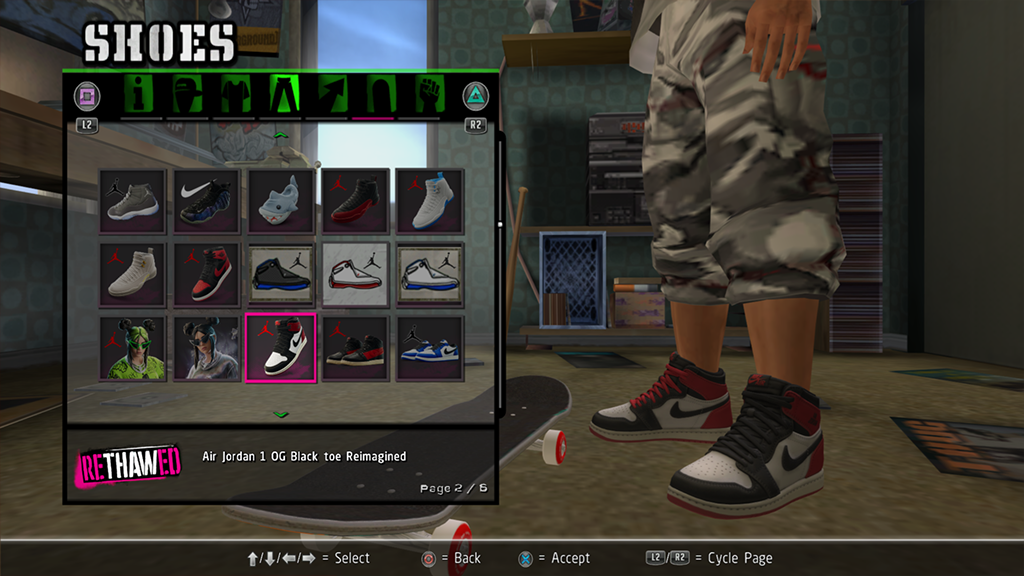 Installed items will show in the appropriate category of the Create-a-Skater menu.
