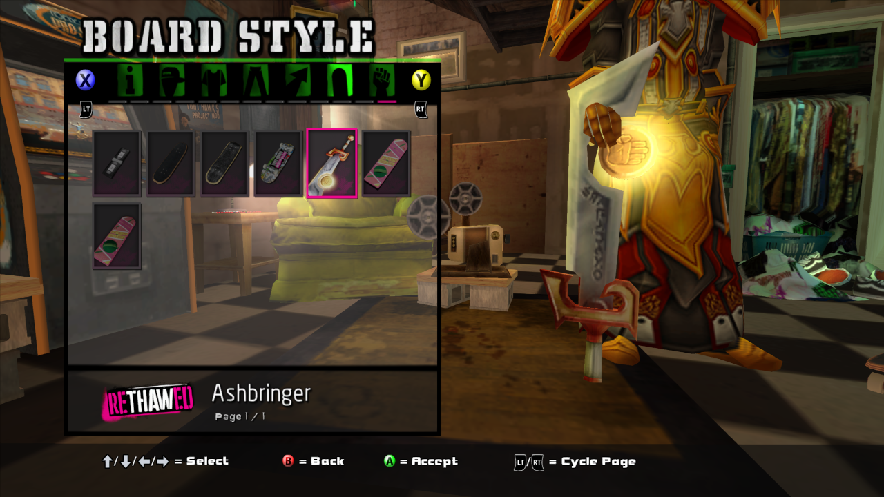 Installed items will show in the appropriate category of the Create-a-Skater menu.