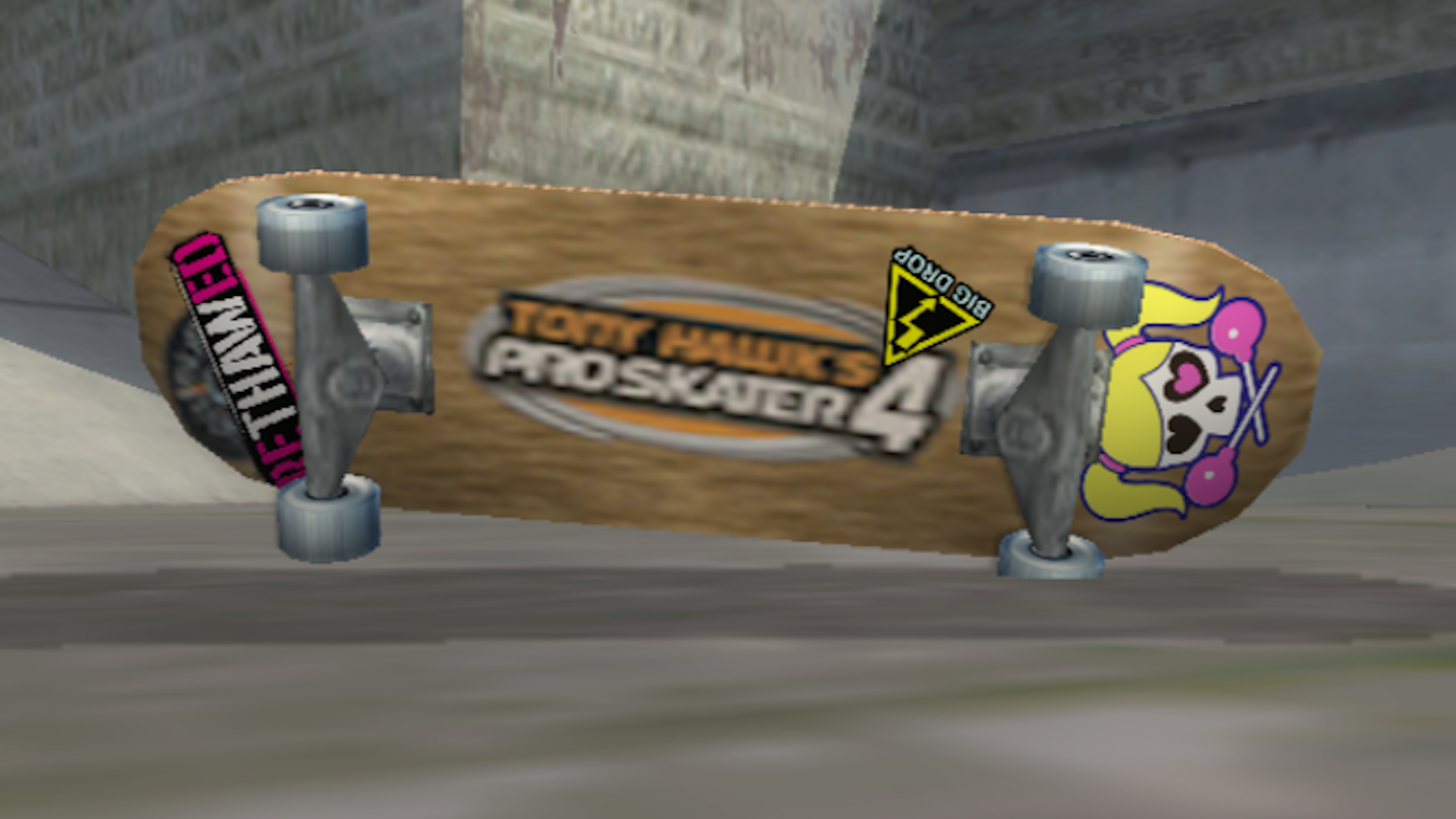 Miscellaneous skate decks from the Tony Hawk's series. There's not every game, but there's plenty. Thanks to bebnkarnate for providing me the N-Gage exclusive THPS decks and Lakitu for getting me screenshots!