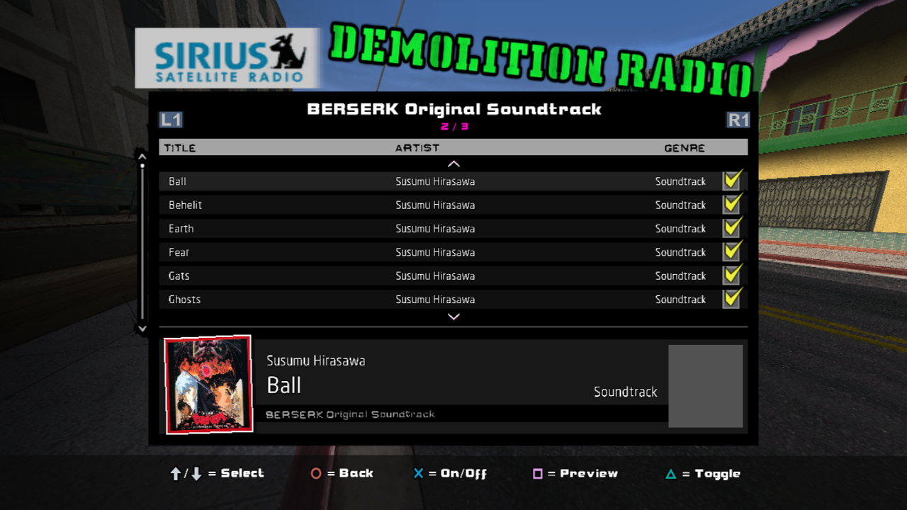 Installed soundtracks will appear in the Demolition Radio menu of the Music Options menu.