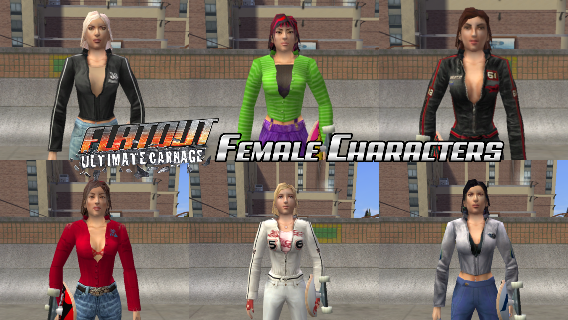 Here's a complete pack of characters from FlatOut 2, which includes both male and female drivers as well as matching skate deck and griptape graphics.