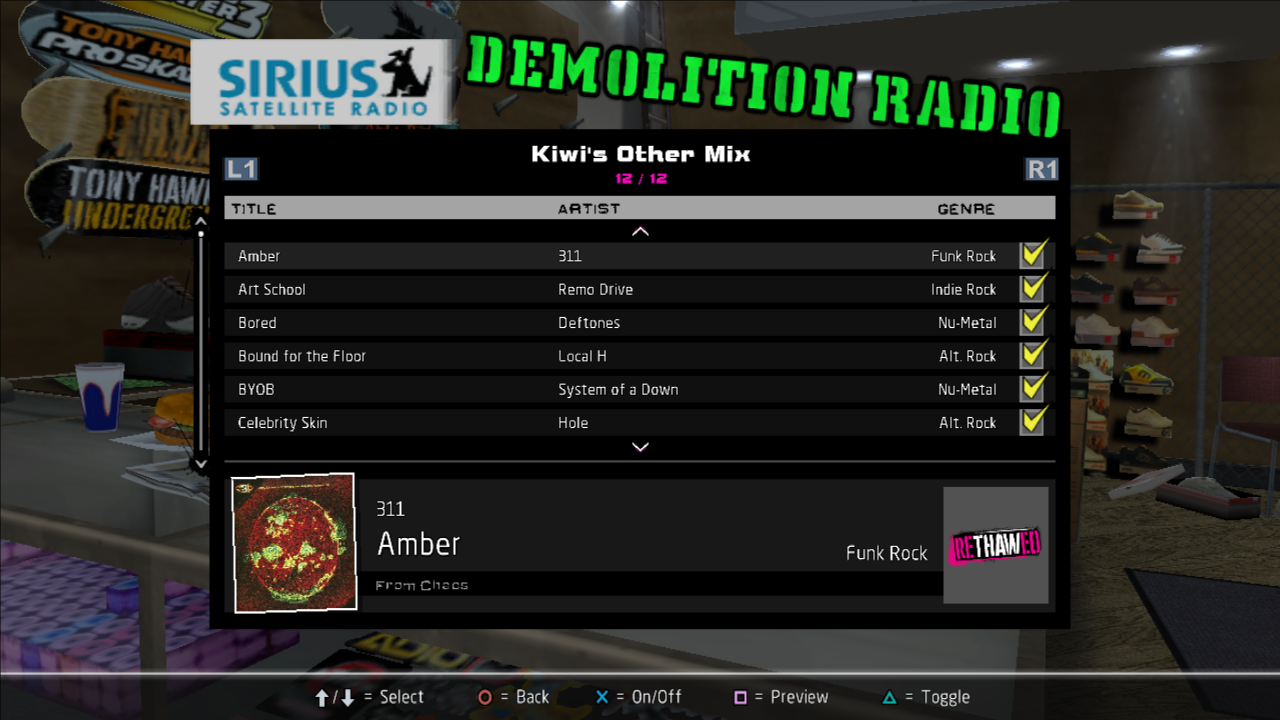Installed soundtracks will appear in the Demolition Radio menu of the Music Options menu.