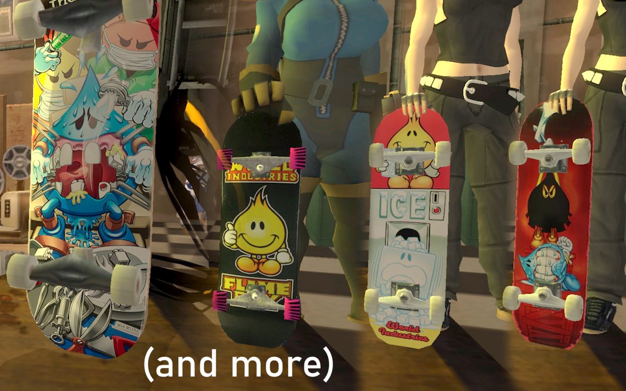 Installed items will show in the Deck Graphic category of the Create-a-Skater menu.