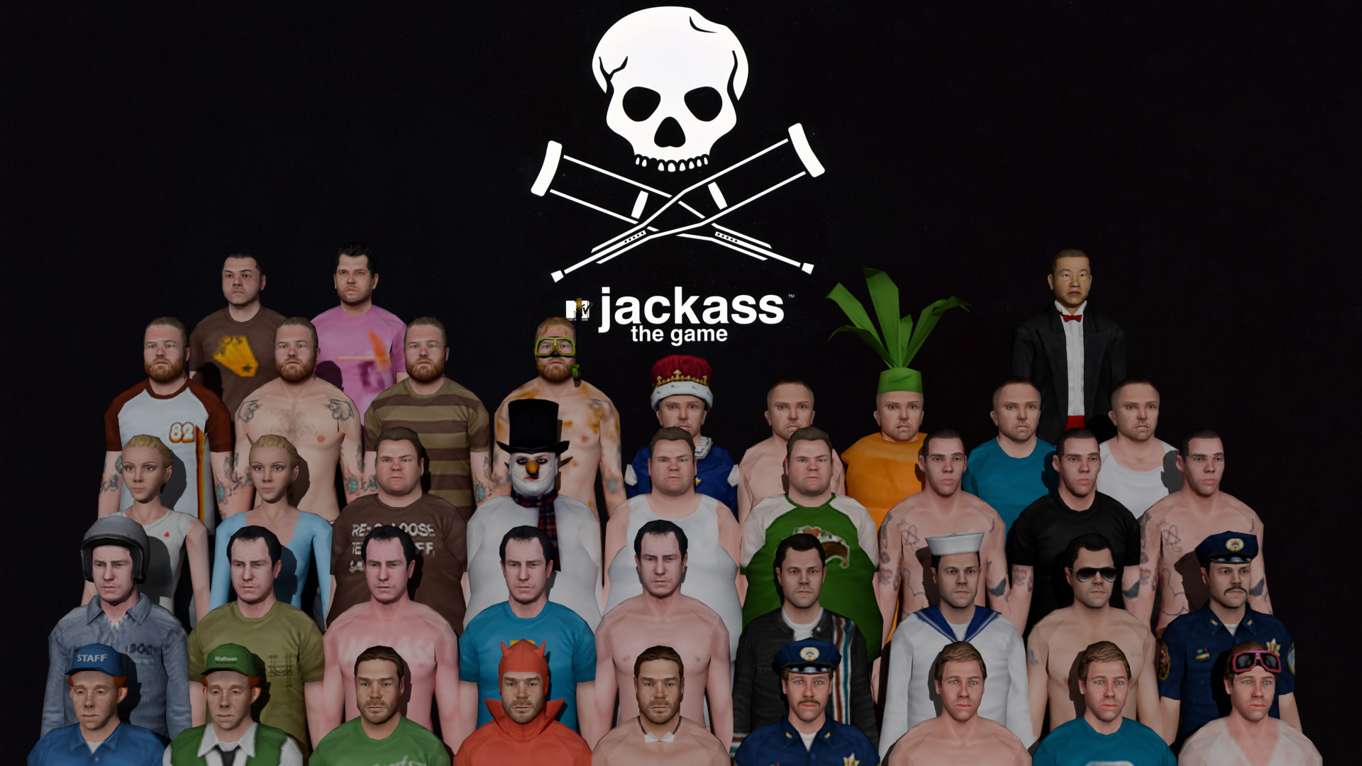 All characters & outfits from Jackass: The Game, including voicepacks.